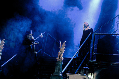 The most notable aspect of their performance is their theatrical aspect, melding metal music and theater together. Even without really understanding the "lore" of King Diamond, anyone can appreciate the visual aspects of this band. As smoke filled the venue, the curtains rose to a view of an intricate yet spooky hospital setting. Diamond emerged from the set and approached a casket with the name "Abigial" written on it (presumably connecting to their encore song, Abigial in addition to their first album which is named the same?). As he pulled out the doll from the casket, the rest of the band emerged. Andy LaRocque and Mike Wead playing guitar, Pontus Egberg on the bass, and Matt Thompson covering the drums.